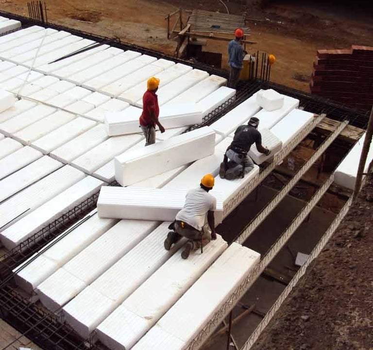 El Bloque para Placa MANICA®, elaborado a partir de poliestireno expandido autoextinguible (EPS), es utilizado como encofrado perdido con excelentes propiedades de aislamiento térmico, en el vaciado de losas nervadas.